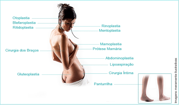 Selecione uma parte do corpo e veja informações sobre o procedimento |